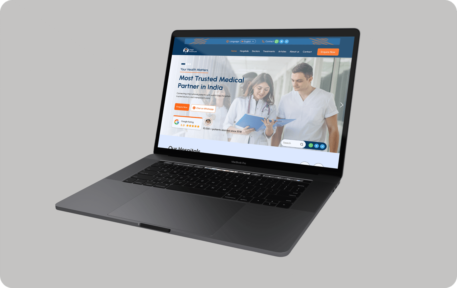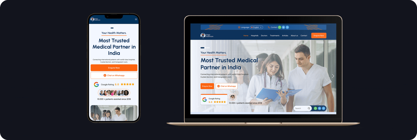 The final website delivered a professional, intuitive experience that strengthens Ginger Healthcare’s global positioning. Patients can now explore hospitals and doctors in India with confidence and ease.Through structured navigation, verified content design, and a clear booking flow, the platform effectively connects people with the right medical professionals; ensuring the process is simple for anyone across the globe.
