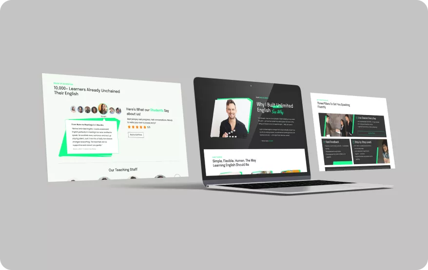 We needed to balance visual appeal with educational clarity, ensuring that the content felt motivating rather than overwhelming. The brand tone had to be approachable yet confident; encouraging users from different proficiency levels to book a call and explore how Unlimited English could benefit them.